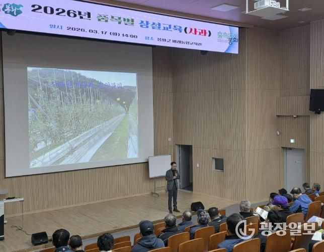 광장일보 주재영 기자 | 봉화군은 지역 주력 소득작목인 사과의 품질을 높이고 전문 농업인을 육성하기 위해 17일 농업기술센터 미래농업교육관에서 사과원 조성 및 재배기술 교육을 개최했다.