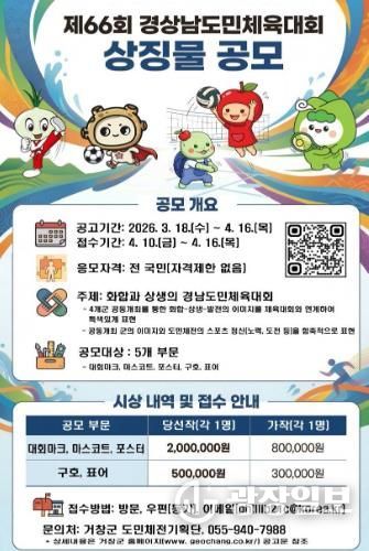 이광희 도민체전기획단장은 “4개군의 정체성과 화합·상생의 경상남도민체육대회를 잘 어우러지게 담아낼 수 있는 참신한 작품들이 접수되기를 기대한다”며 “2027년 경상남도민체육대회에 대한 전 국민의 관심과 참여를 바란다”고 말했다.