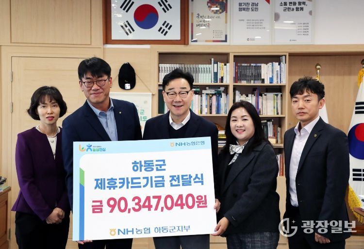 광장일보 주재영 기자 | 하동군은 지난 17일 NH농협은행 하동군지부(지부장 장주익)로부터 제휴카드 사용에 따른 적립 기금 9035만 원을 전달받았다고 밝혔다.