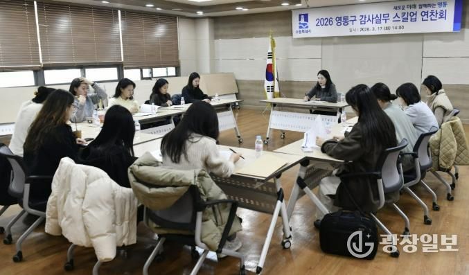 광장일보 박균현 기자 | 수원시 영통구는 지난 17일 동 행정복지센터 실무자 12명을 대상으로 '감사실무 스킬업 연찬회'를 개최했다. 이번 연찬회는 종합감사 과정에서 반복적으로 지적되는 사례를 중심으로 실무 대응 역량을 높이고, 직원들의 전문성을 강화하기 위해 마련됐다.
