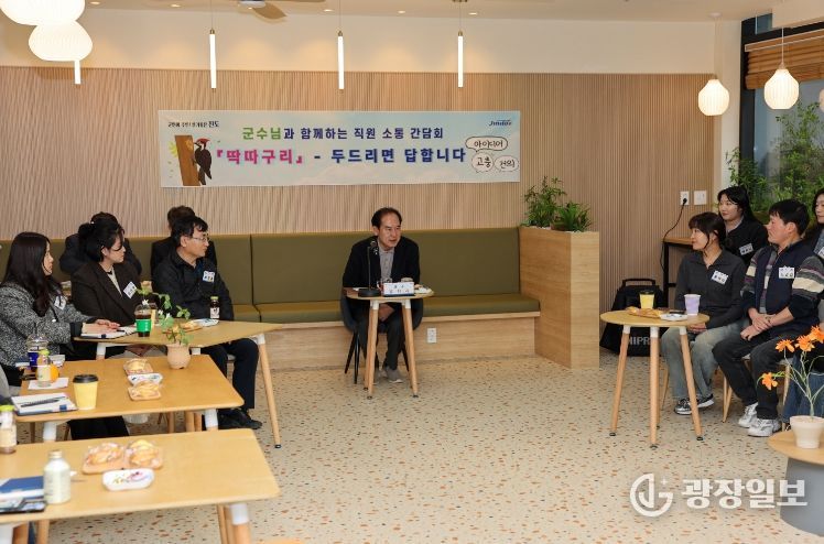 이번 간담회는 3년 전에 진행된 직원 소통 프로그램인 ‘너의 목소리를 들려줘’ 이후 마련된 자리로, 직원들의 고충과 건의 사항을 군수가 직접 듣고 군정에 대한 각자의 생각(아이디어)을 공유하기 위해 추진됐다.
