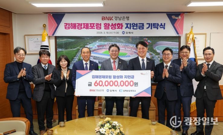 광장일보 주재영 기자 | 김해시는 18일 BNK경남은행에서 김해경제포럼과 김해경제인의 밤 행사 지원을 위해 6,000만 원을 기탁했다고 밝혔다.