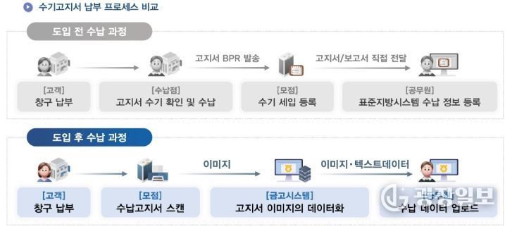 이 시스템은 수기로 작성한 고지서의 문자와 숫자를 자동으로 인식해 전산 데이터로 변환하는 방식이다.