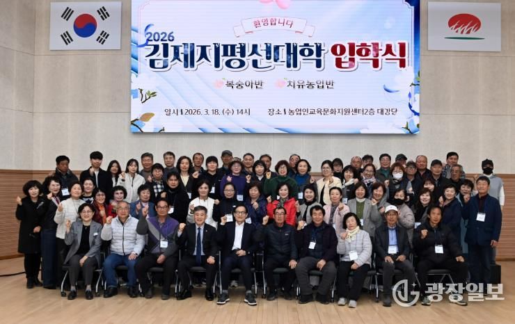 광장일보 주재영 기자 | 김제시는 18일 농업인교육문화지원센터에서 110여명이 참석한 가운데 김제 지평선대학 입학식을 가졌다고 밝혔다.