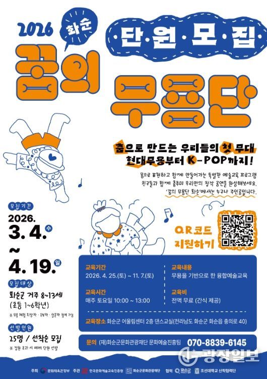 광장일보 주재영 기자 | (재)화순군문화관광재단은 오는 4월 19일까지 ‘2026 꿈의 무용단 화순’ 3기 단원을 모집한다고 18일 밝혔다.