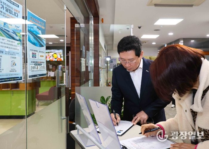 광장일보 주재영 기자 | 이상일 용인특례시장은 18일 오전 수지구 성복동행정복지센터를 찾아 경기남부광역철도 등 철도망 구축을 위한 서명운동에 참여했다.