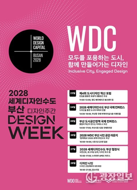 광장일보 주재영 기자 | 부산시는 오는 3월 23일부터 29일까지 일주일간 '2028 세계디자인수도(WDC) 부산 디자인 주간(Week)'을 운영한다고 밝혔다.