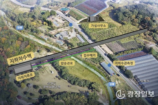 보길도 지하수 저류 댐은 지난 2023년도에 설치됐으며 지표면 아래에 차수 벽을 설치하여 지하 수위를 상승시킴으로써 가뭄에도 지하수를 확보할 수 있는 시설이다.