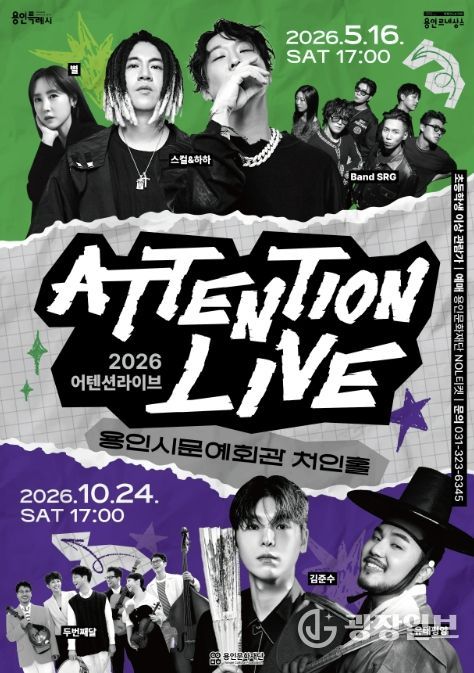 광장일보 주재영 기자 | 용인문화재단은 용인시문예회관 처인홀에서 청년층을 주요 대상으로 한 라이브 공연 브랜드 '2026 어텐션 라이브'를 상·하반기 두 차례에 걸쳐 개최한다.