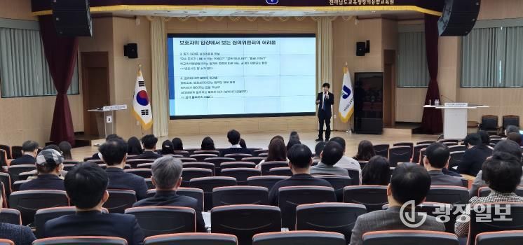 광장일보 주재영 기자 | 전라남도교육청은 19일 나주창의융합교육원에서 22개 교육지원청 학교폭력대책심의위원회 소위원장 및 간사 등 100여 명을 대상으로 역량강화 연수를 실시했다.