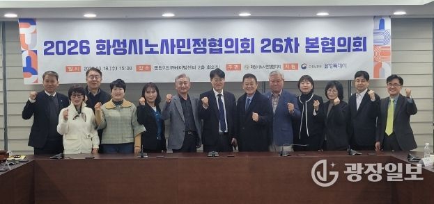 광장일보 나병석 기자 | 화성시노사민정협의회가 18일 동탄2 인큐베이팅센터에서 제26차 본협의회를 열고 지역 노동 현안과 산업안전 중심의 주요 사업계획을 논의했다.