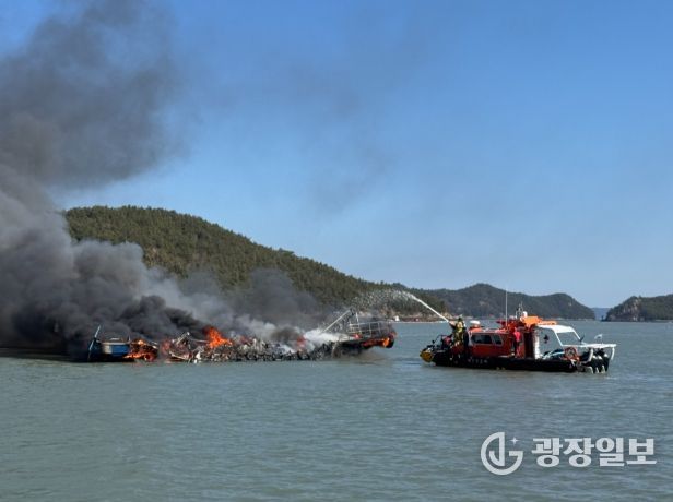 신고를 접수한 완도해경은 경비함정과 파출소 연안구조정, 구조대 등을 급파하여 구명조끼를 착용한 A호 선장을 신속하고 안전하게 구조한 뒤, 가용 장비를 총동원해 본격적인 화재 진압에 나섰다.