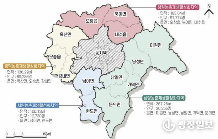 시는 국비 126억원을 포함한 총사업비 180억원을 투입해 미원면 어울림거점센터와 문의면 대청다락행복센터 조성 사업을 추진하고 있으며, 가덕면·남일면·낭성면 배후마을과 연계한 프로그램 운영을 위한 상당생활권 기본계획 수립을 완료했다.