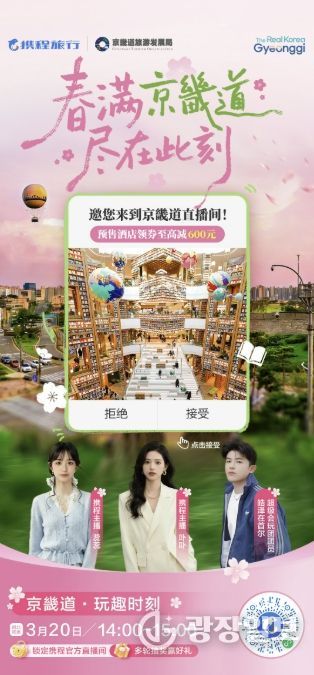 경기관광공사는 20, 21일 이틀간 스타필드 수원 별마당도서관에서 중국 최대 여행플랫폼인 씨트립(트립닷컴 그룹 운영플랫폼)과 중국 여행소비자 대상, 경기관광 홍보 및 상품 할인 판매를 위한 온라인 라이브 커머스를 진행한다.