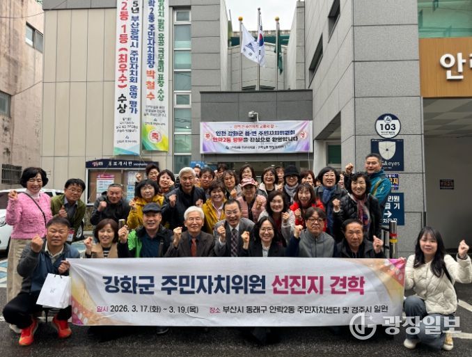 광장일보 주재영 기자 | 부산 동래구 안락2동 행정복지센터와 안락2동 주민자치회는 지난 18일, 인천 강화군 13개 읍·면 주민자치위원회 방문단 28명을 맞아 주민자치 우수 운영 사례를 공유하는 자리를 마련했다고 밝혔다.