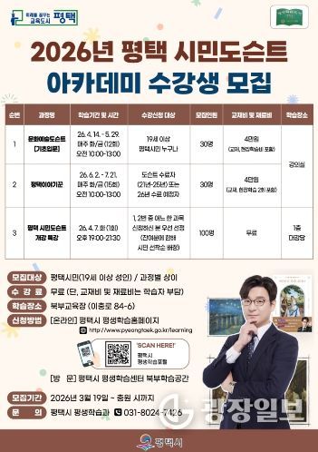 한편, ‘평택 시민도슨트 아카데미’는 2025년 경기도 평생학습대상에서 우수사례로 선정된 바 있다. 배움을 지역과 연결하고 다음 세대와 잇는 평생학습 모델로 꾸준히 주목받고 있다. 수강 신청은 평생학습포털에서 온라인으로 가능하다.