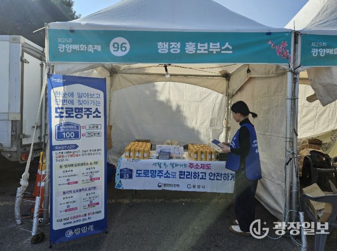 광장일보 주재영 기자 | 광양시는 지난 3월 19일 제25회 광양매화축제 현장에서 관광객과 시민을 대상으로 도로명주소의 원리와 상세주소 부여 제도를 집중 홍보했다고 밝혔다.