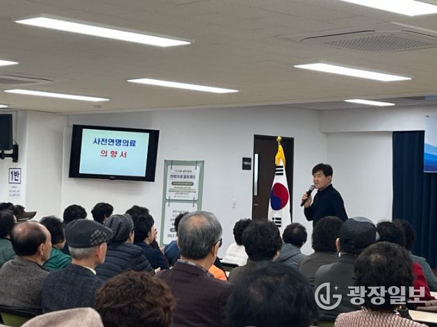 이날 교육에서는 △웰다잉의 의미와 필요성 △연명의료결정제도 소개 △사전연명의료의향서 작성 안내 등의 내용이 다뤄졌으며, 보건소는 사전연명의료의향서 등록을 희망하는 노인들을 대상으로 개별상담을 진행하는 등 현장상담소도 함께 운영했다.