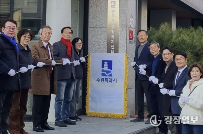 광장일보 박균현 기자 | 수원시 장안구 송죽동은 지난 19일, 송죽동 행정복지센터 입구에서 주민 중심의 마을 교육 네트워크인 '2026년 동 평생학습센터'의 공식 출범을 알리는 현판 제막식을 개최했다.