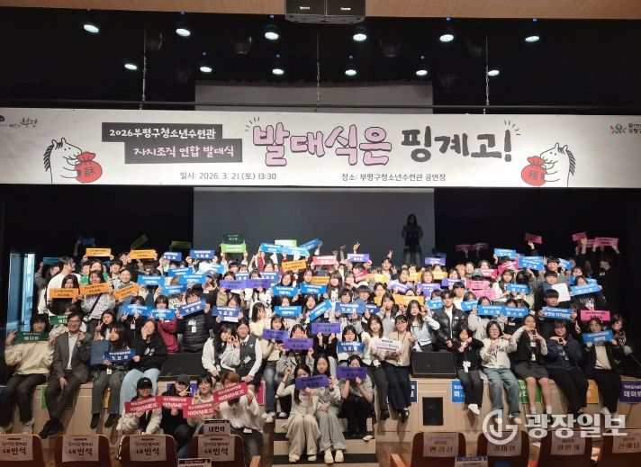 광장일보 주재영 기자 | 부평구청소년수련관은 지난 21일 오후 1시 30분 수련관 4층 공연장에서 2026년 자치조직 연합 발대식 ‘발대식은 핑계고!’를 성황리에 개최했다.