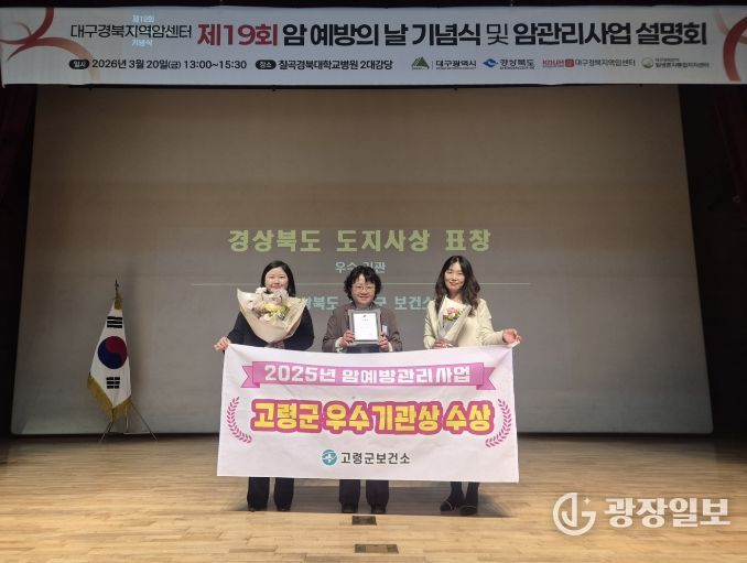 광장일보 주재영 기자 | 고령군은 지난 3월 20일 칠곡경북대학교병원 대구경북지역암센터에서 개최된 ‘제19회 암예방의 날 기념식’에서 2025년 암예방관리사업 우수기관상을 수상했다.