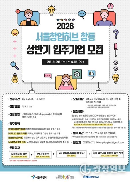 광장일보 주리아 기자 | 콘텐츠·XR 등 뉴미디어 산업이 빠르게 성장하며 관련 스타트업 수요가 확대되는 가운데, 동북권 창업지원 특화거점 ‘서울창업허브 창동’이 2026년 상반기 신규 입주기업 모집에 나선다.