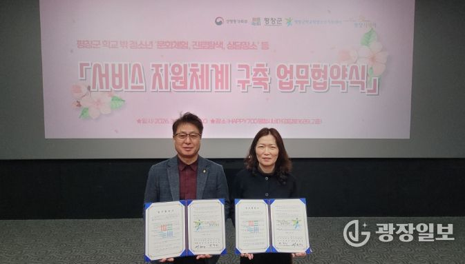 광장일보 이현나 기자 | 평창군학교밖청소년지원센터와 HAPPY700평창시네마는 24일, 관내 ‘학교 밖 청소년’ 및 ‘학업 중단 숙려 청소년’들이 안전하고 건강한 사회 구성원으로서 성장할 수 있도록 지원하기 위하여 서비스 지원체계의 확충을 위한 업무협약식을 가졌다.