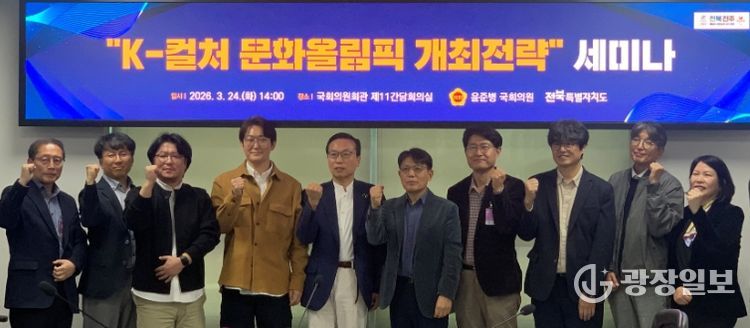 광장일보 주재영 기자 | 전북특별자치도와 윤준병 국회의원실은 24일 국회의원회관에서 ‘K-컬처 문화올림픽 개최 전략’ 세미나를 개최했다.