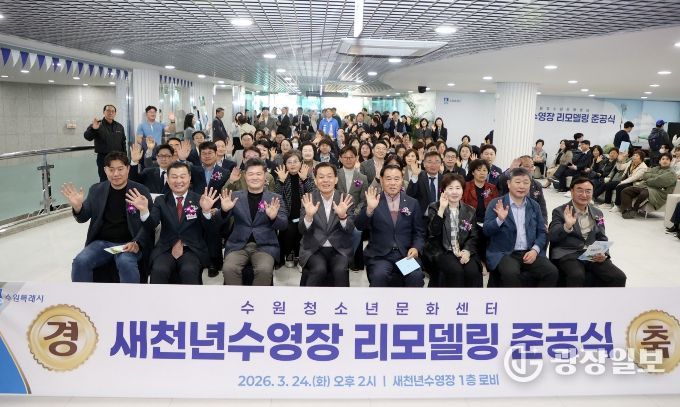 광장일보 박균현 기자 | 수원특례시의회는 24일 청소년문화센터 내 새천년수영장에서 열린 '새천년수영장 리모델링 공사 준공식'에 참석해 준공을 축하했다.