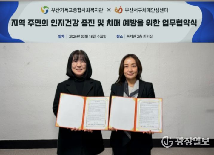 광장일보 주재영 기자 | 부산 서구치매안심센터(센터장 양태인)는 지난 18일 부산기독교종합사회복지관(관장 김정자)과 치매 예방 및 인지건강 증진을 위한 업무협약(MOU)을 체결했다.
