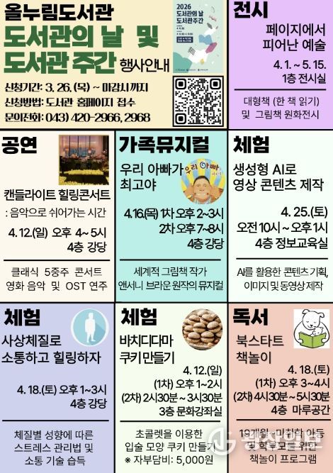 광장일보 이현나 기자 | 단양군이 ‘2026 도서관의 날·도서관 주간’을 맞아 다채로운 독서문화 행사를 운영한다.