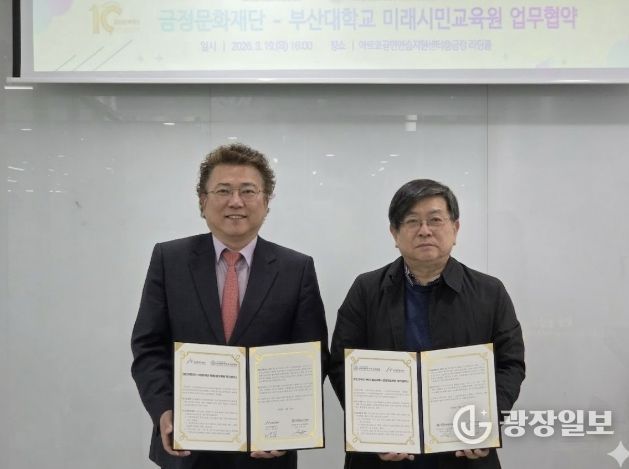 광장일보 주재영 기자 | 재단법인 금정문화재단과 부산대학교 미래시민교육원은 지난 19일, 부산 지역의 문화·예술 및 평생교육 저변 확대를 위한 업무협약(MOU)을 체결했다고 밝혔다.