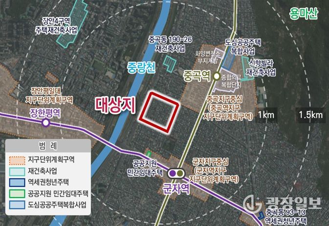 광장일보 주리아 기자 | 서울시가 ‘중곡동 254-15 일대’ 주택정비형 개발사업 신속통합기획을 확정하며 중곡동 일대에 녹지와 수변, 생활공간이 어우러진 최고 35층, 2,200세대 규모의 대단지가 들어선다.