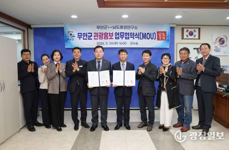 광장일보 주재영 기자 | 무안군은 지난 24일 군수실에서 남도지역 풍경정보를 전국에 제공·기록하는 단체인 남도풍경연구소와 자연·문화·관광자원 홍보를 위한 업무협약(MOU)을 체결했다.