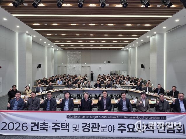 광장일보 이현나 기자 | 강원특별자치도는 3월 25일 오후 1시 30분 강원연구원에서 도내 18개 시군 업무 담당 공무원 120여 명이 참석한 가운데 '2026 건축‧주택 및 경관 분야 주요시책 간담회'를 개최했다.