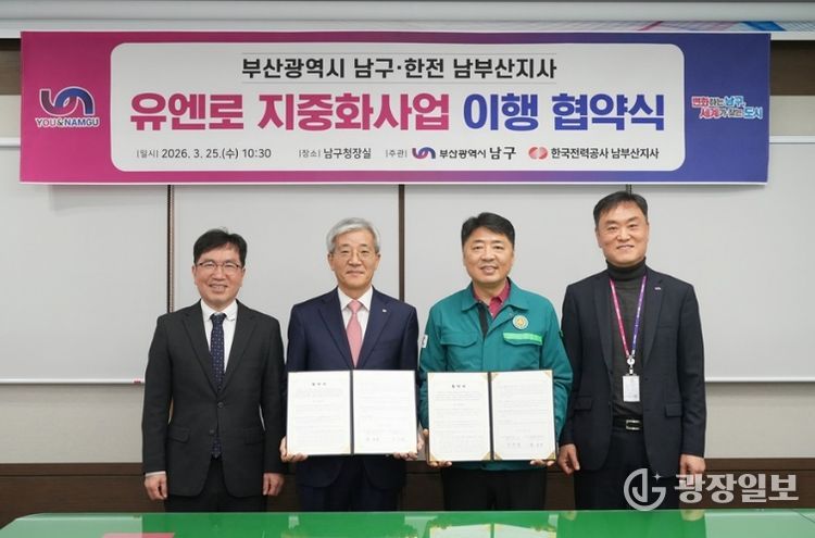 광장일보 주재영 기자 | 부산 남구는 '유엔로 지중화사업'과 관련해 지난 3월 25일 오전 10시 30분 남구청에서 한국전력공사 남부산지사와 업무협약을 체결했다고 밝혔다.