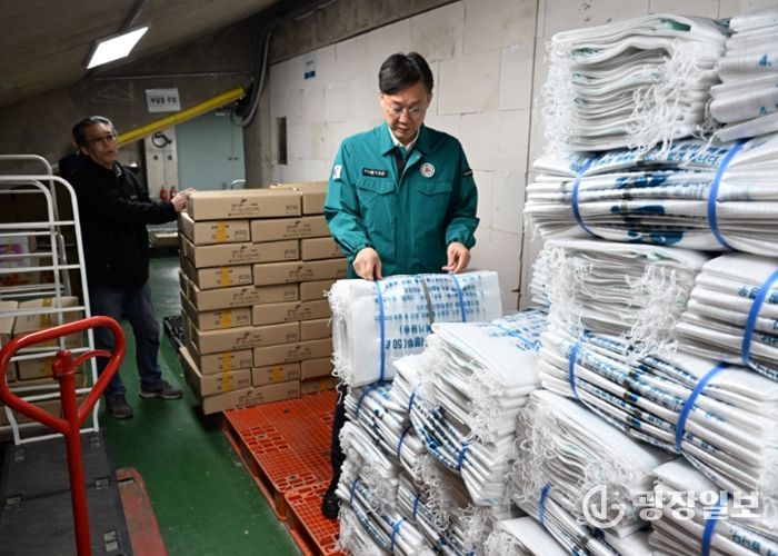 광장일보 주재영 기자 | 안산시는 중동 정세 장기화로 일부 지역의 종량제봉투 수급 차질 우려가 제기되는 가운데, 이민근 안산시장이 25일 안산도시공사 종량제봉투 판매소를 방문해 수급 상황을 확인했다고 밝혔다.