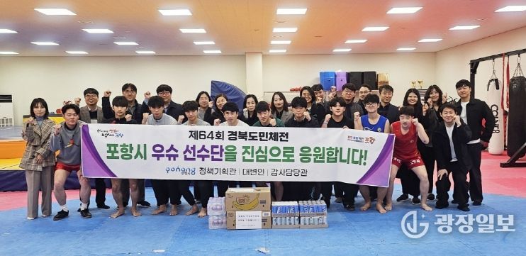 광장일보 주재영 기자 | 포항시가 제64회 경북도민체육대회를 앞두고 종목별 선수단을 격려하며 서포터즈 응원 활동을 이어가고 있다.