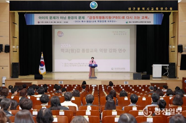광장일보 주재영 기자 | 대구시교육청은 3월 26일 대구시교육연수원 대강당에서 특수학급 설치학교 교(원)감 326명을 대상으로 ‘2026. 학교(원)감 통합교육 역량 강화 연수’를 실시한다.
