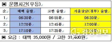 운행은 하루 3회 왕복으로 운영되며, 요금은 태백 기준 35,000원, 고한 기준 31,400원으로 책정됐다.