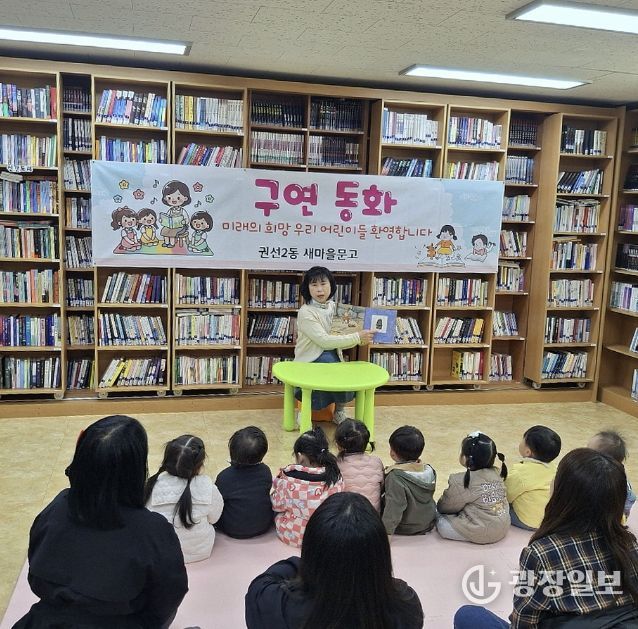 광장일보 박균현 기자 | 수원시 권선구 권선2동 새마을문고는 26일 관내 벽산어린이집 원아들을 대상으로 구연동화 프로그램을 진행했다.