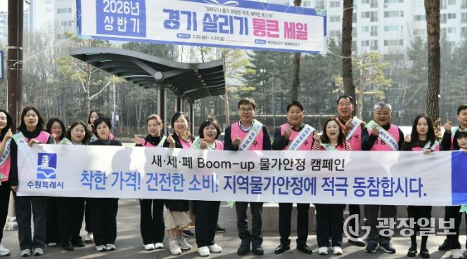 광장일보 박균현 기자 | 수원특례시 영통구는 지난 26일 매탄중심상가 골목형상점가 일원에서 2026년 상반기 새빛세일페스타와 연계한 ‘Boom-up 물가안정 캠페인’을 실시했다.