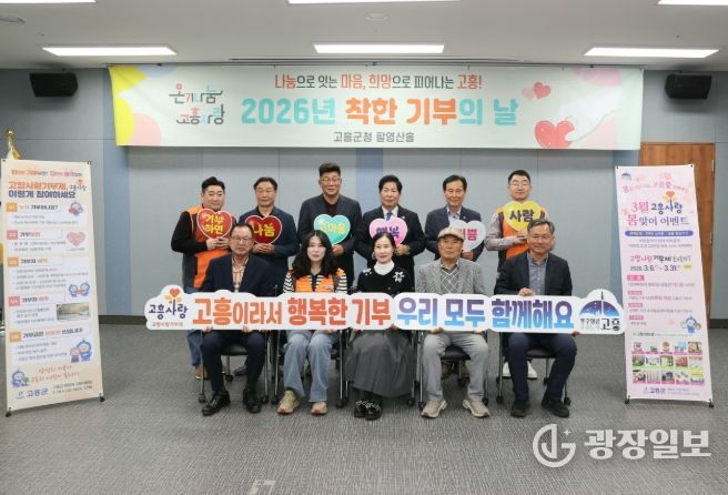 광장일보 주재영 기자 | 고흥군은 지난 26일 군청 팔영산홀에서 3월 ‘착한 기부의 날’ 행사를 개최했다. 이번 행사에는 3개 분야, 6개 팀 10명이 참여해 총 2,200만 원의 소중한 기부금이 모였다.