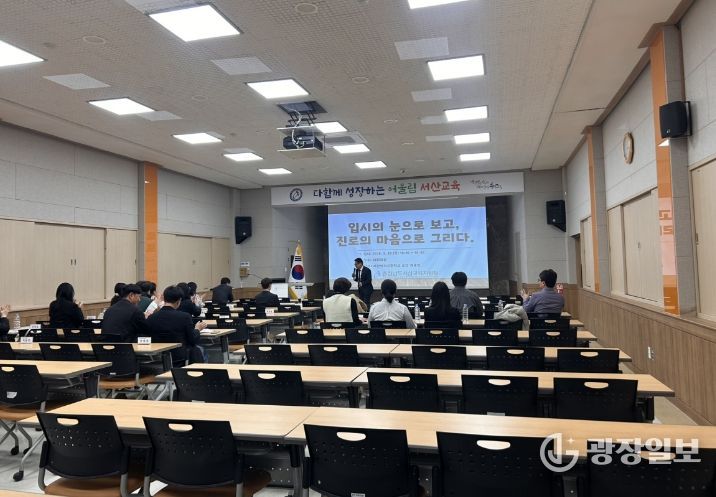 광장일보 나학천 기자 | 서산교육지원청은 지난 26일 대회의실에서 관내 초·중·고등학교 진로 전담 교사 및 교감 33명을 대상으로 ‘입시의 눈으로 보고, 진로의 마음으로 그리다’ 연수를 개최하여 학교 현장의 진로 교육 역량을 한 차원 높였다. 본 연수는 급변하는 대학 입시 제도와 고교학점제 등 교육 정책의 변화 속에서 데이터 기반의 정교한 분석력을 확보하고, 이를 학생 개개인의 고유한 특성과 연결하는 ‘공감 중심의 진로 설계’ 체계를 정착시키기 위해 마련됐다.