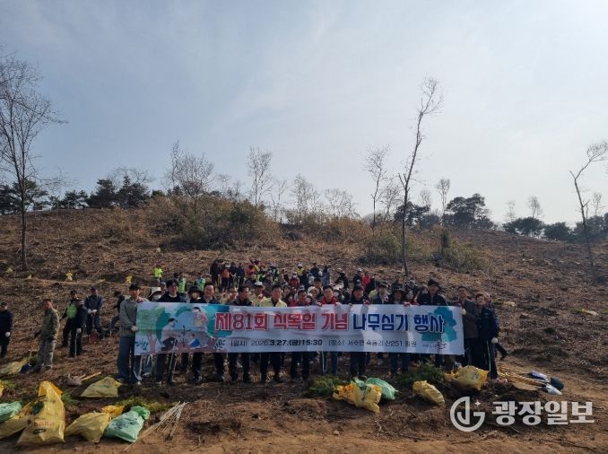 광장일보 주재영 기자 | 군산시는 27일 서수면 축동리 일원에서 제81회 식목일을 기념해 나무심기 행사를 개최했다.