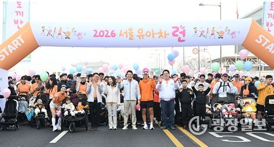 광장일보 주리아 기자 | 오세훈 서울시장은 28일 오전 8시 광화문광장에서 열린 ‘2026 유아차 런(Run)’에 참석해 5천여 가족에게 응원 메시지를 전하고 여의도공원까지 안전하게 달려줄 것을 당부했다.