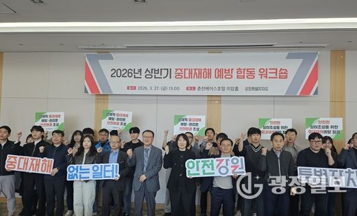 광장일보 이현나 기자 | 강원특별자치도는 3월 27일 오후 1시 춘천 베어스호텔에서 도·시군, 고용노동부 등 관계자 50여 명이 참석한 가운데 ‘2026년 상반기 중대재해 예방 합동 워크숍’을 개최했다. 이번 워크숍은 중대재해처벌법 엄정 대응 기조에 맞춰 실질적인 사고 예방과 현장 실무자의 대응 역량 강화를 위해 마련됐다.