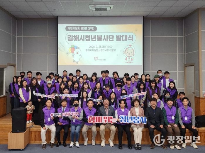 광장일보 주재영 기자 | 김해시자원봉사센터는 지난 28일 지역 청년 140명이 참여한 가운데 ‘2026 김해시청년봉사단 발대식’을 개최했다고 30일 밝혔다.