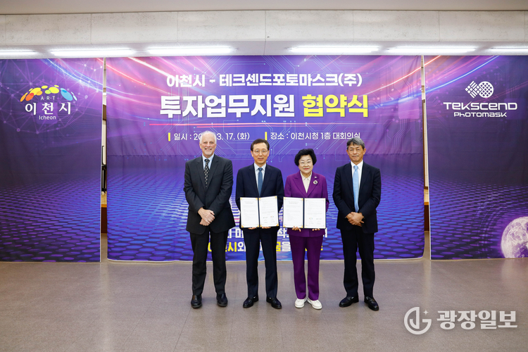 광장일보 주재영 기자 | 이천시는 17일 테크센드포토마스크㈜와 2,500억 원 규모의 투자업무 지원협약을 체결하고, 제3공장 증설에 대한 지원을 약속했다.