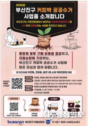 광장일보 주재영 기자 | 부산 부산진구는 오는 4월부터 부전동, 전포동, 범천1동에 소재한 커피전문점을 대상으로 커피박 공공수거 사업을 시행한다.